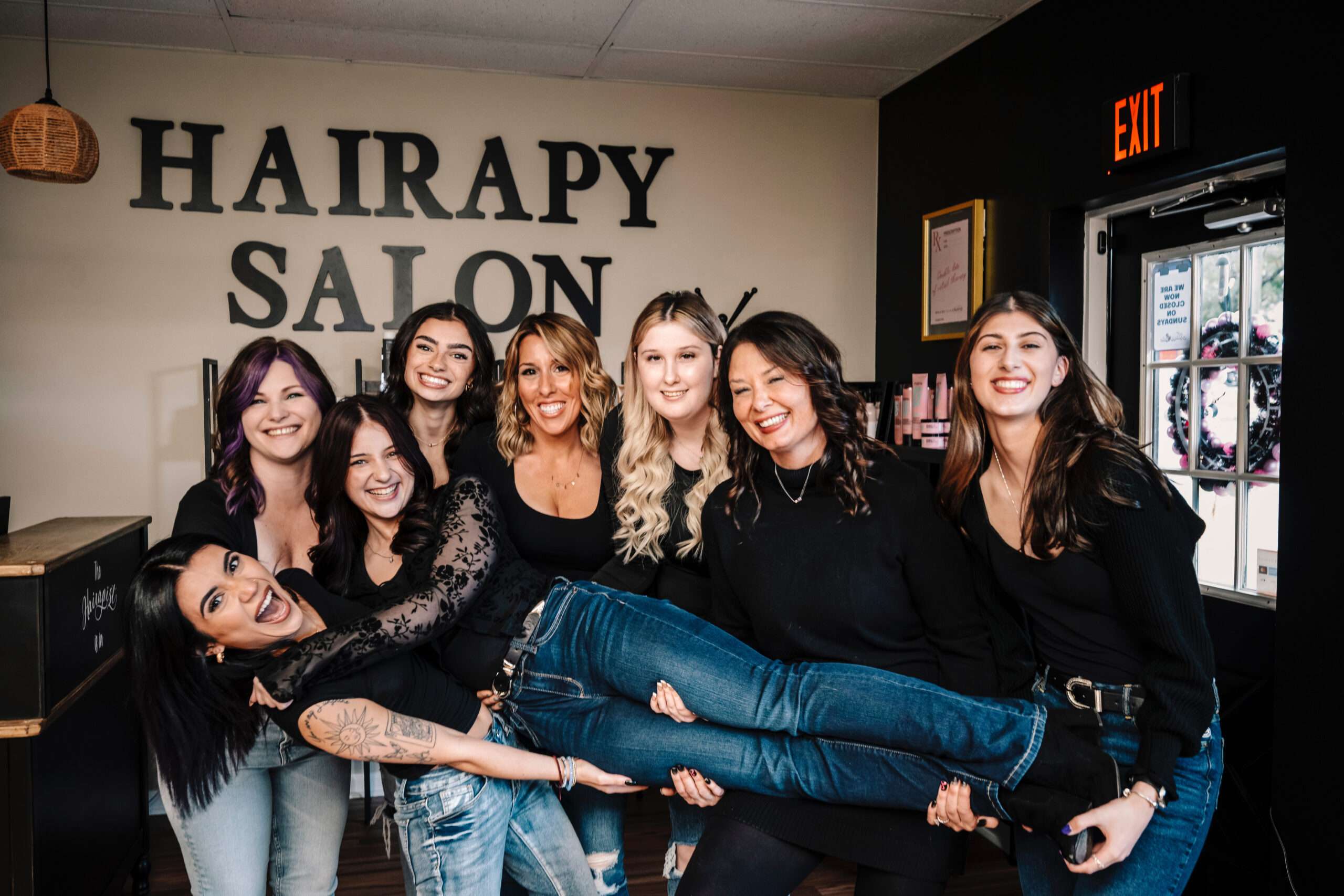With a natural love for people and an entrepreneurial spirit, She created Hairapy Salon to bring her vision of the “perfect happy salon” to life. Located in Milltown, NJ, Hairapy Salon is more than just a place to get your hair done, it’s a family. We believe in warm welcome, genuine conversations, and professional styles that make every guest feel beautiful and confident. Education is at the heart of everything we do. Our team takes multiple classes each year, staying on top of the latest trends, techniques, and products so that we can offer the very best to our guests. From advanced color services to extensions, treatments, and styling we are always growing and bringing fresh ideas to the chair.